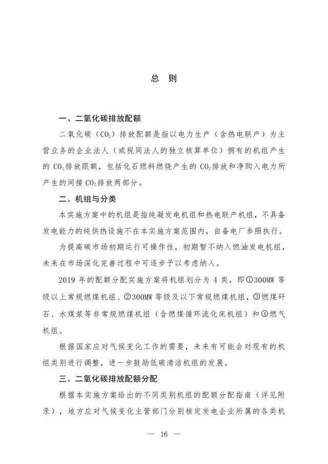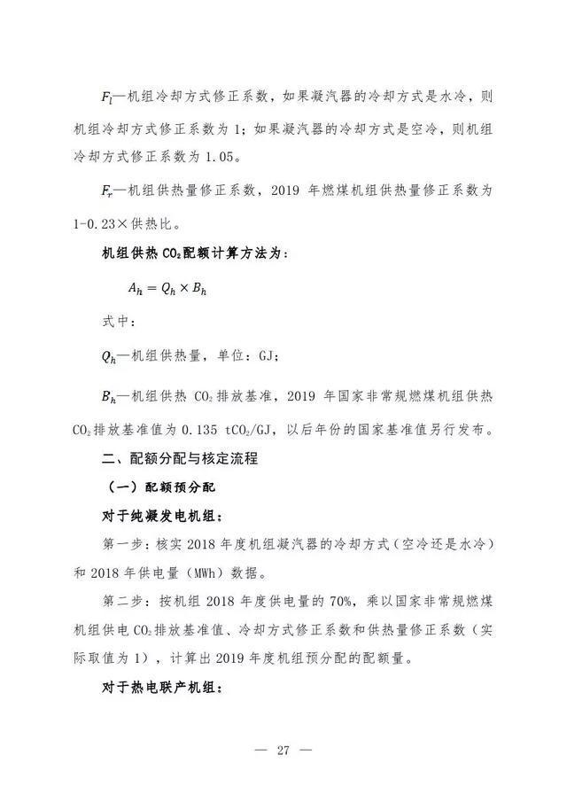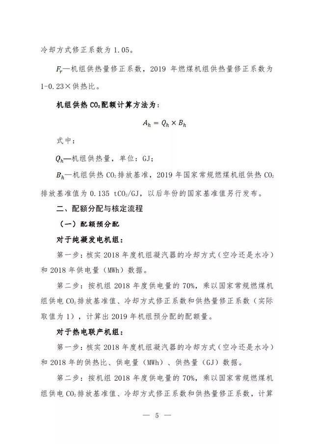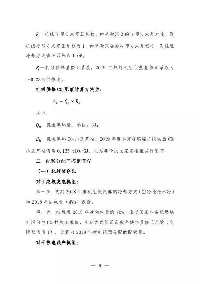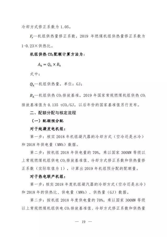 2019年发电行业重点排放单位(含自备电厂、热电联产)二氧化碳排放配额分配实施方案(试算版)