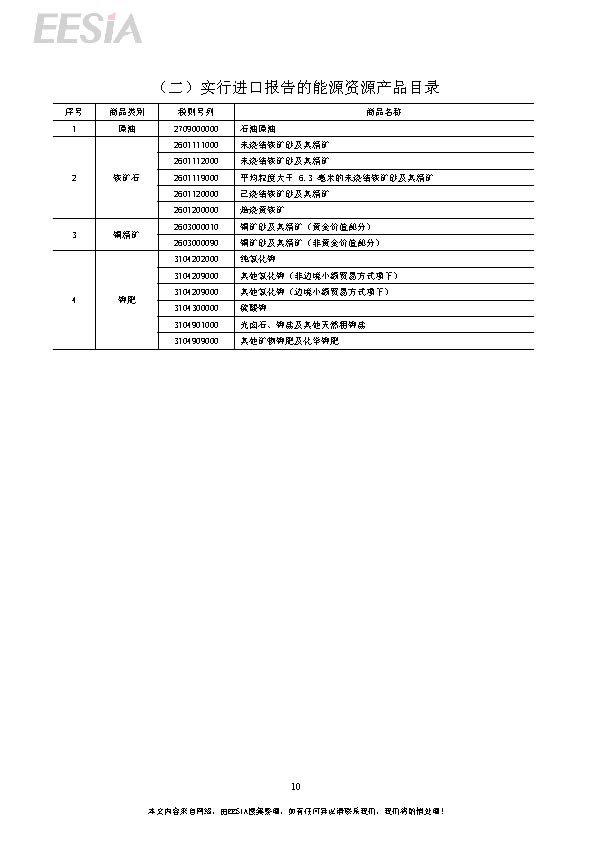 一、将实施自动进口许可管理的原油、铁矿石、铜精矿、钾肥纳入《实行进口报告的能源资源产品目录》,将实施出口许可证管理的稀土纳入《实行出口报告的能源资源产品目录》。进口、出口上述产品的对外贸易经营者应履行有关进出口信息报告义务。