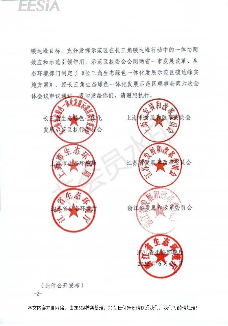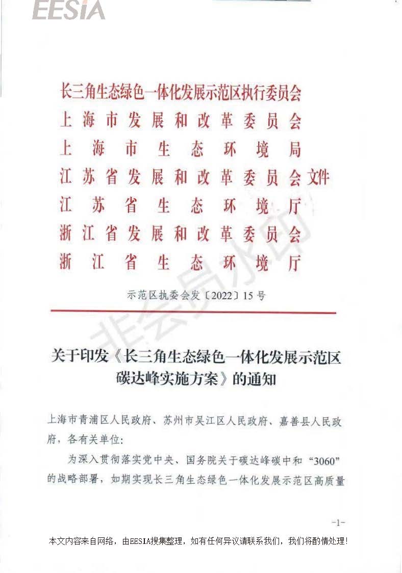 长三角生态绿色一体化发展示范区碳达峰实施方案
