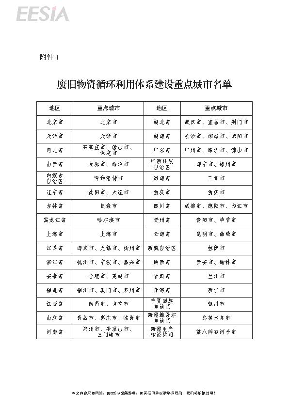 1.废旧物资循环利用体系建设重点城市名单