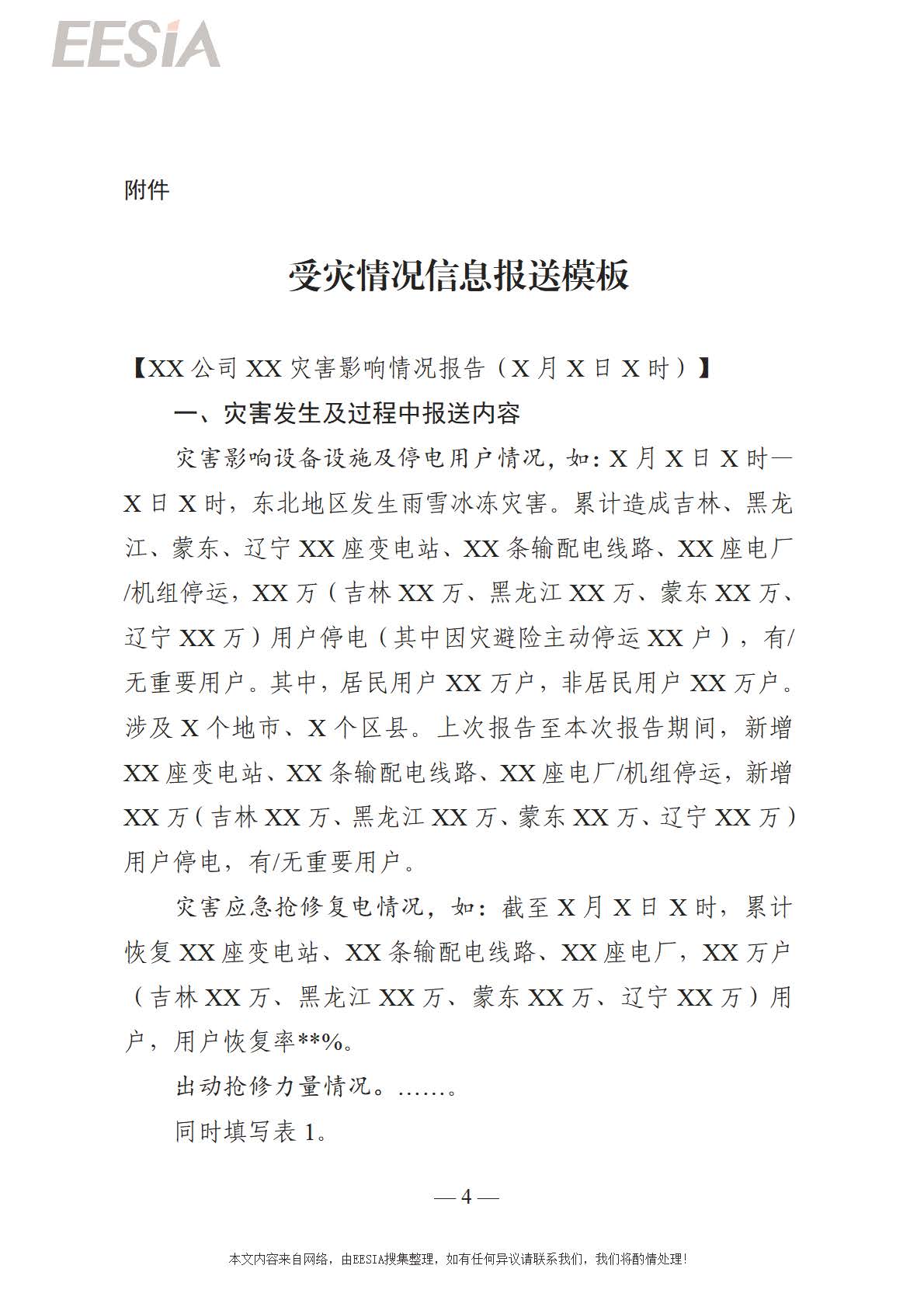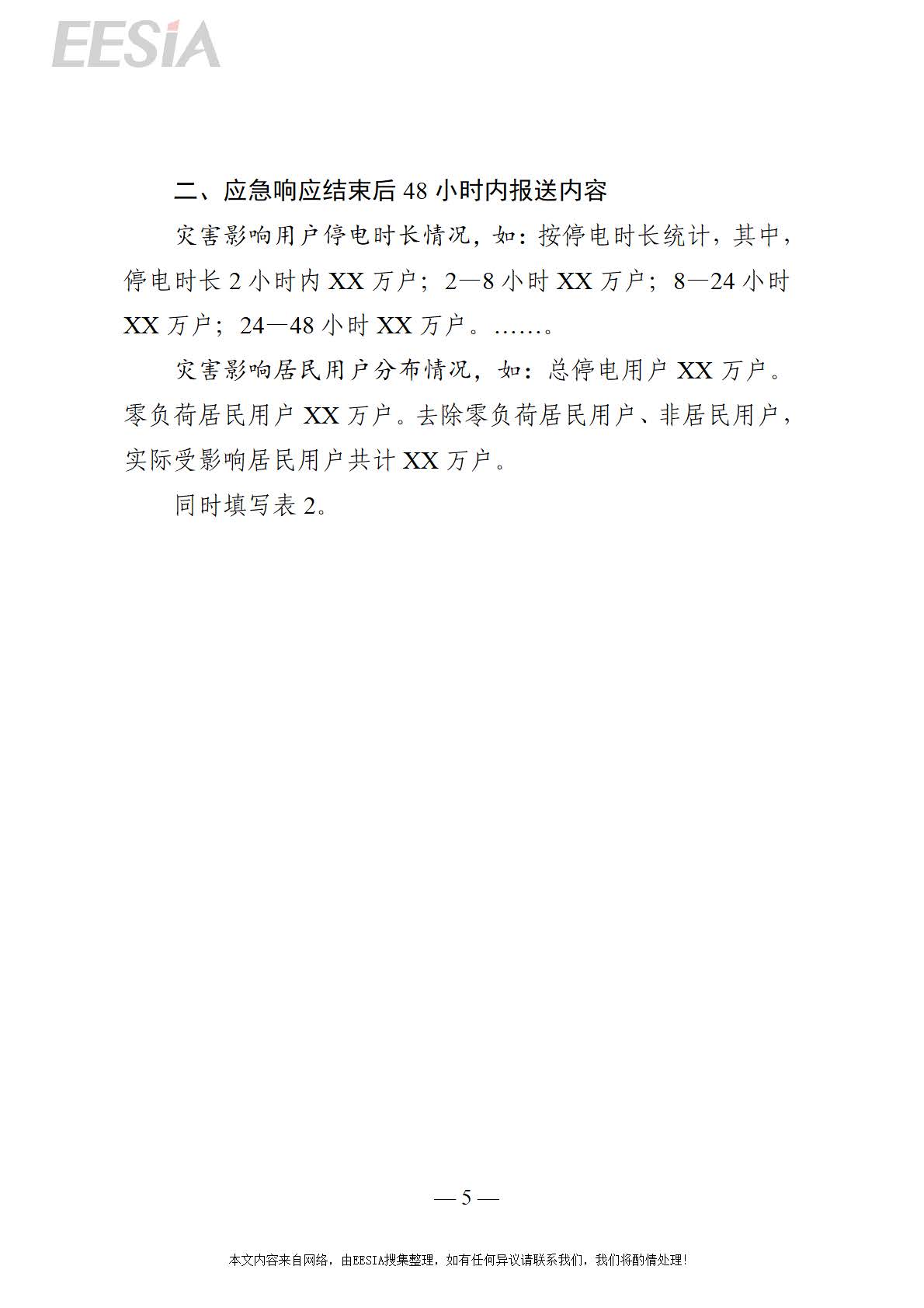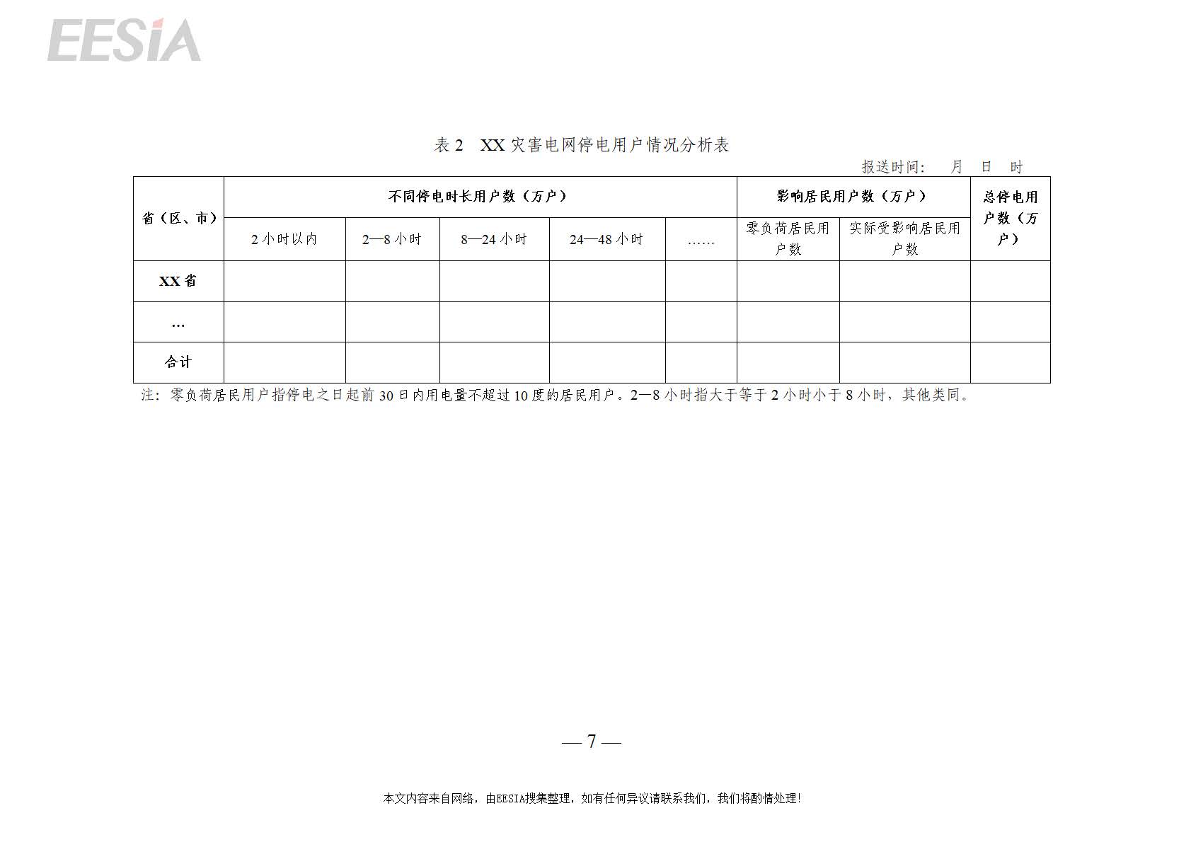 (四)详报。灾害应急响应结束后5—7个工作日,信息报送主体需详细总结本次灾害防范应对工作,梳理灾情信息、分析设备和用户停电原因、总结经验教训、提出对策建议,形成并报送灾害应对分析总结报告。