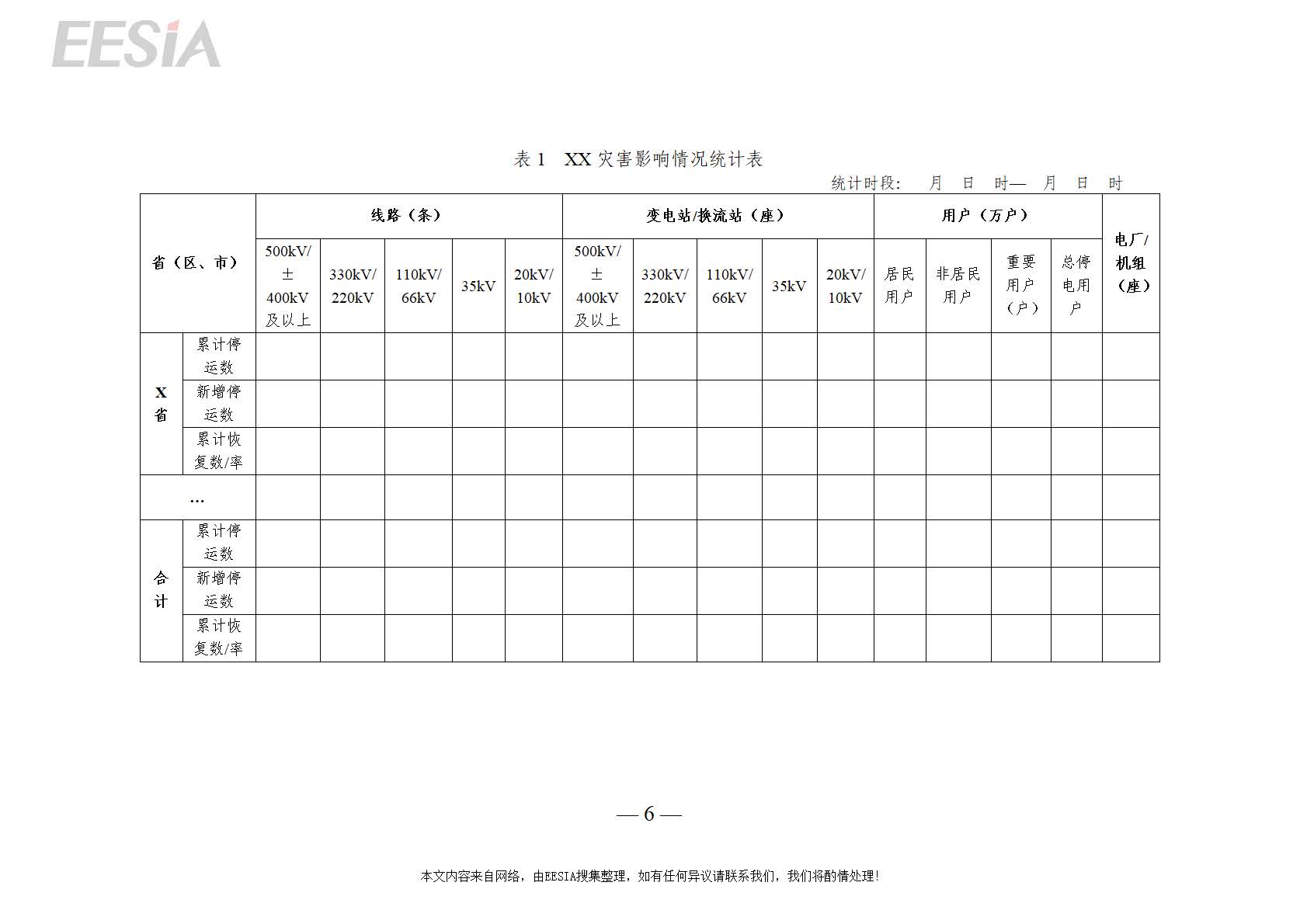 全国范围内因自然灾害引起的电力系统设备停运及损失、用户停电数量及时长,抢修复电、出动抢修抢险力量情况,自然灾害概况等。报送信息内容应聚焦民生、突出重要用户,注重时效性、准确性、有效性相统一。