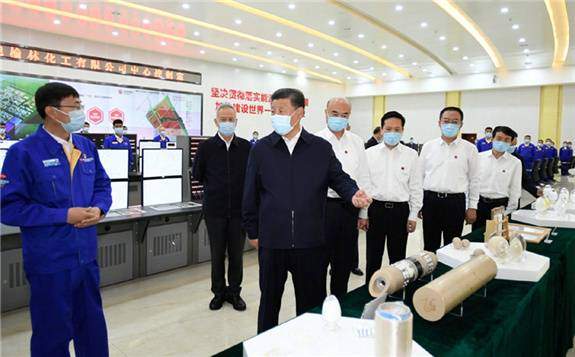 13日上午,习近平首先来到国家能源集团榆林化工有限公司,了解循环经济煤炭综合利用项目规划建设运行情况。在中心控制室,习近平观看项目产品展示,对企业坚持创新发展,坚持安全、稳定、清洁运行的做法表示肯定。随后,习近平到年产40万吨乙二醇项目现场察看,询问煤化工深度发展有关情况,同企业职工代表亲切交流。他强调,榆林是国家重要能源基地,为国家经济社会发展作出了重要贡献。煤炭作为我国主体能源,要按照绿色低碳的发展方向,对标实现碳达峰、碳中和目标任务,立足国情、控制总量、兜住底线,有序减量替代,推进煤炭消费转型升级。煤化工产业潜力巨大、大有前途,要提高煤炭作为化工原料的综合利用效能,促进煤化工产业高端化、多元化、低碳化发展,把加强科技创新作为最紧迫任务,加快关键核心技术攻关,积极发展煤基特种燃料、煤基生物可降解材料等。