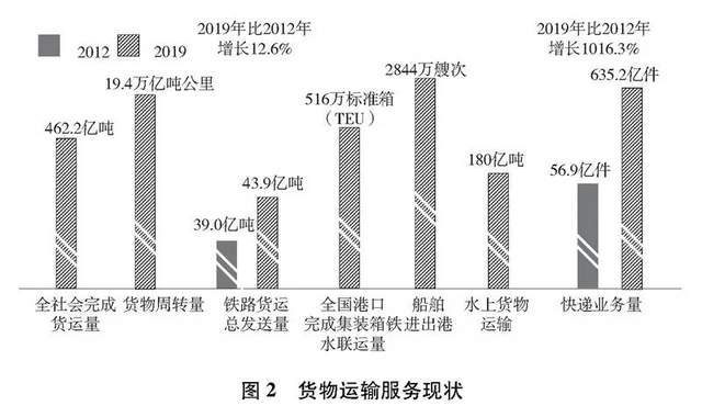 货物运输服务保障能力不断提升。中国是世界上运输最繁忙的国家。面对日益增长的货物运输需求,加快多式联运发展,创新公铁联运、空铁联运、铁水联运、江海联运、水水中转、滚装联运等高效运输组织模式,开展铁路运能提升、水运系统升级、公路货运治理等专项行动,货物运输结构持续优化,综合运输效率不断提高,物流成本逐步降低,交通运输环境污染明显减少,原油、成品油、天然气管道建设不断提速。铁路运量占社会运输总量比例不断提升,“公转铁”行动取得突出成效。港口货物吞吐量和集装箱吞吐量均居世界第一。快递业务量保持强劲增长态势,连续6年位居世界第一。运输服务能力大幅提升,推进物流降本增效取得积极成效,促进了物流业转型升级。
