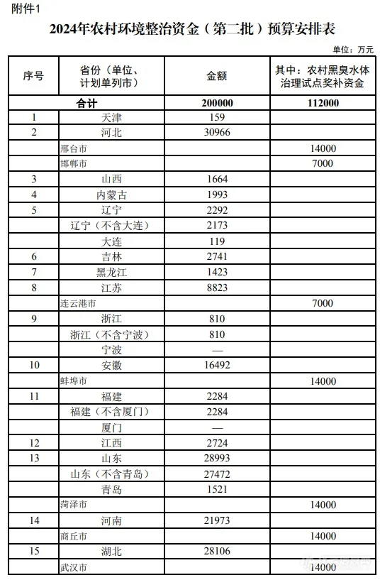近日,财政部集中下达2024年多项生态环保相关资金预算,包括大气污染防治、水污染防治、城市管网及污水处理、农村环境整治等,预算分别为109亿、87亿、41.065亿、20亿。