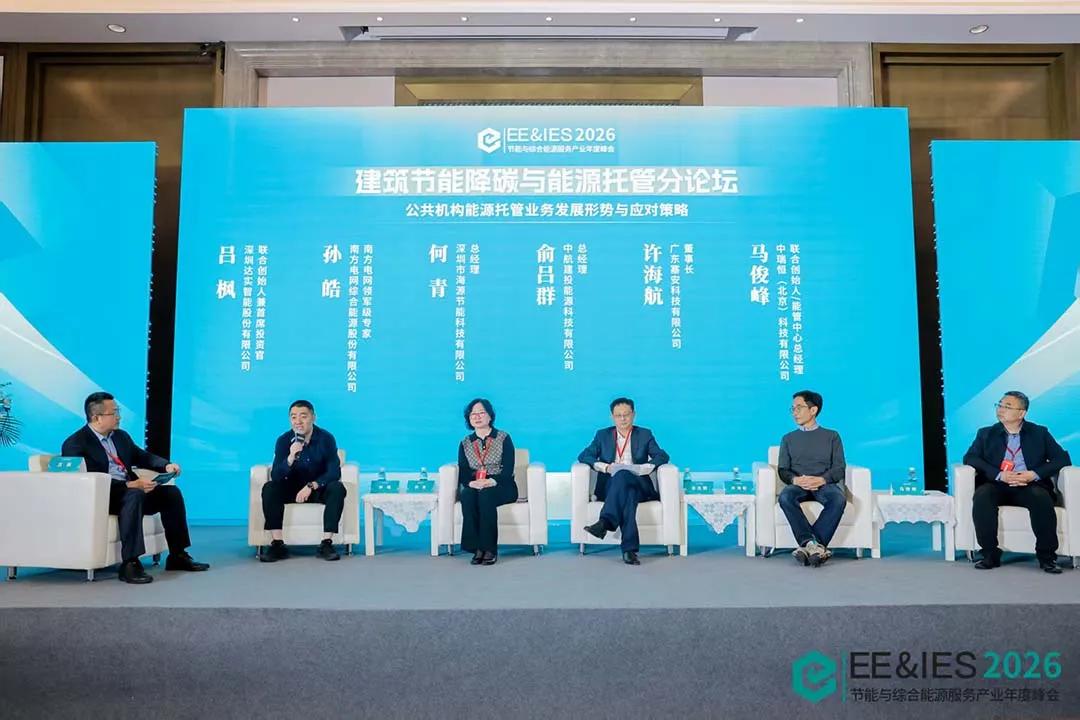 圆桌对话环节,南方电网综合能源股份有限公司南方电网领军级专家孙皓,深圳市海源节能科技有限公司总经理何青,中航建投能源科技有限公司总经理俞吕群,广东塞安科技有限公司董事长许海航,中瑞恒(北京)科技有限公司联合创始人/能管中心总经理马俊峰等公共机构能源托管领域优秀企业代表,以“公共机构能源托管的发展现状与能力构建”为题,聚焦公共机构能源托管市场近年来的发展态势,深入探讨了项目实施中的核心挑战与风险点、项目持续价值创造路径、能源托管所需构建的核心能力,以及未来的发展机会等议题。嘉宾们结合行业观察与一线经验,分享了宝贵的市场策略与模式创新见解,为行业同仁提供了深刻的经验之谈与专业意见。对话由深圳达实智能股份有限公司联合创始人兼首席投资官吕枫主持。