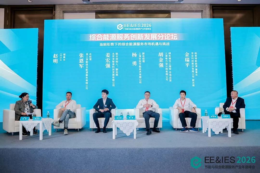 圆桌对话以“当前形势下的综合能源服务市场机遇与挑战”为主题,由EESIA理事长赵明主持。浙江浙勤综合能源服务有限公司总经理张恩军,北京龙智易科技发展有限公司联合创始人、副总裁姜宏强,上海安悦节能技术有限公司副总经理杨勇,上海电力设计院有限公司绿色城市工程院市场总监胡金强,华自科技股份有限公司副总裁兼格莱特新能源董事长金瑞平五位行业优秀企业代表,围绕136号文带来的机遇与挑战、综合能源服务企业布局虚拟电厂所需的核心能力、地方国资开展综合能源服务的战略考量、当下最具商业潜力的赛道,以及转型企业面临的核心痛点等议题展开深度研讨,从不同视角剖析各类型综合能源服务企业的赛道选择与发展路径,助力企业在激烈的市场竞争中把握新机遇、应对新挑战。
